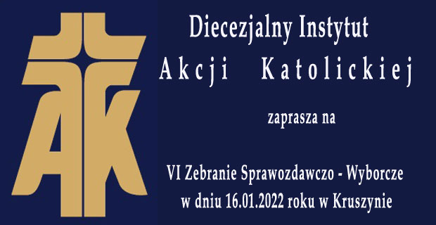 W dniu 16 stycznia 2022 roku o godz,12.00 w Kruszynie odbędzie się VI Zebranie Sprawozdawczo - Wyborcze Akcji Katolickiej Diecezji Włocławskiej.